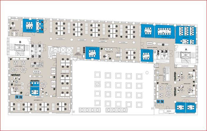 Tehokas pohjaratkaisu mahdollistaa joustavat tilaratkaisut vuokralaisen tarpeen mukaan. Kaksi erillistä keittiötä, erikokoiset neuvotteluhuoneet ja monimuotoiset työskentelytilat luovat pohjan toimivaan hybridityöhön. Tilaan tulee myös tavarahissi. Tila on mahdollista yhdistää alemman kerroksen tilaan, jolloin vuokrattavia neliöitä on yhteensä 2610.