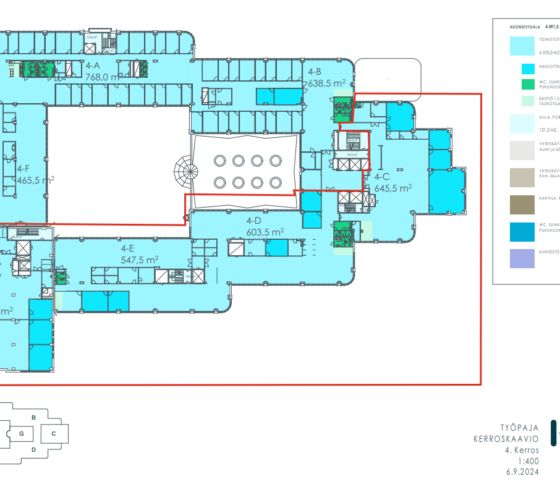 Nyt vuokrattavissa ensivuoden alussa vapautuva suuri toimisto neljännestä kerroksesta. Tilasta löytyy monipuolisesti niin avotyötilaa, kuin myös työ- ja neuvotteluhuoneita. Lisäksi tilasta löytyy keittiö ja siistit wc-tilat.