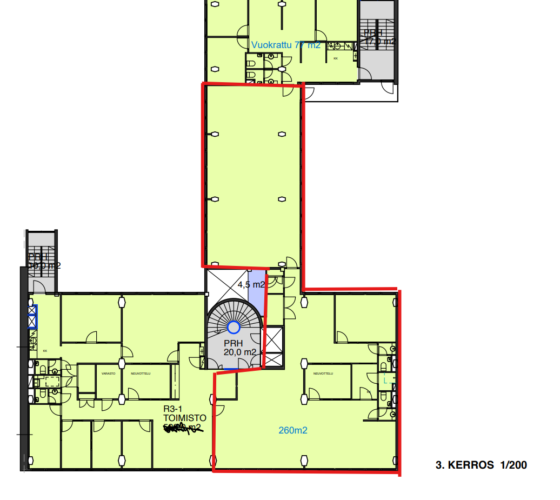 Nyt vuokrattavissa kolmannen kerroksen toimisto omalla keittiöllä. Lisäksi tilasta löytyy niin avotilaa kuin työ- ja neuvotteluhuoneita sekä siistit wc-tilat. Ruoholahdenkatu 8:n tilat on peruskorjattu vuonna 2005, ja ne mukautuvat joustavasti käyttäjien tarpeisiin. Toimistotilat voidaan järjestää avokonttoriksi tai yksittäisiksi työhuoneiksi. Kiinteistössä on pysäköintimahdollisuus sekä parkkihallissa että pihalla, ja alueella on erinomaiset julkisen liikenteen yhteydet.