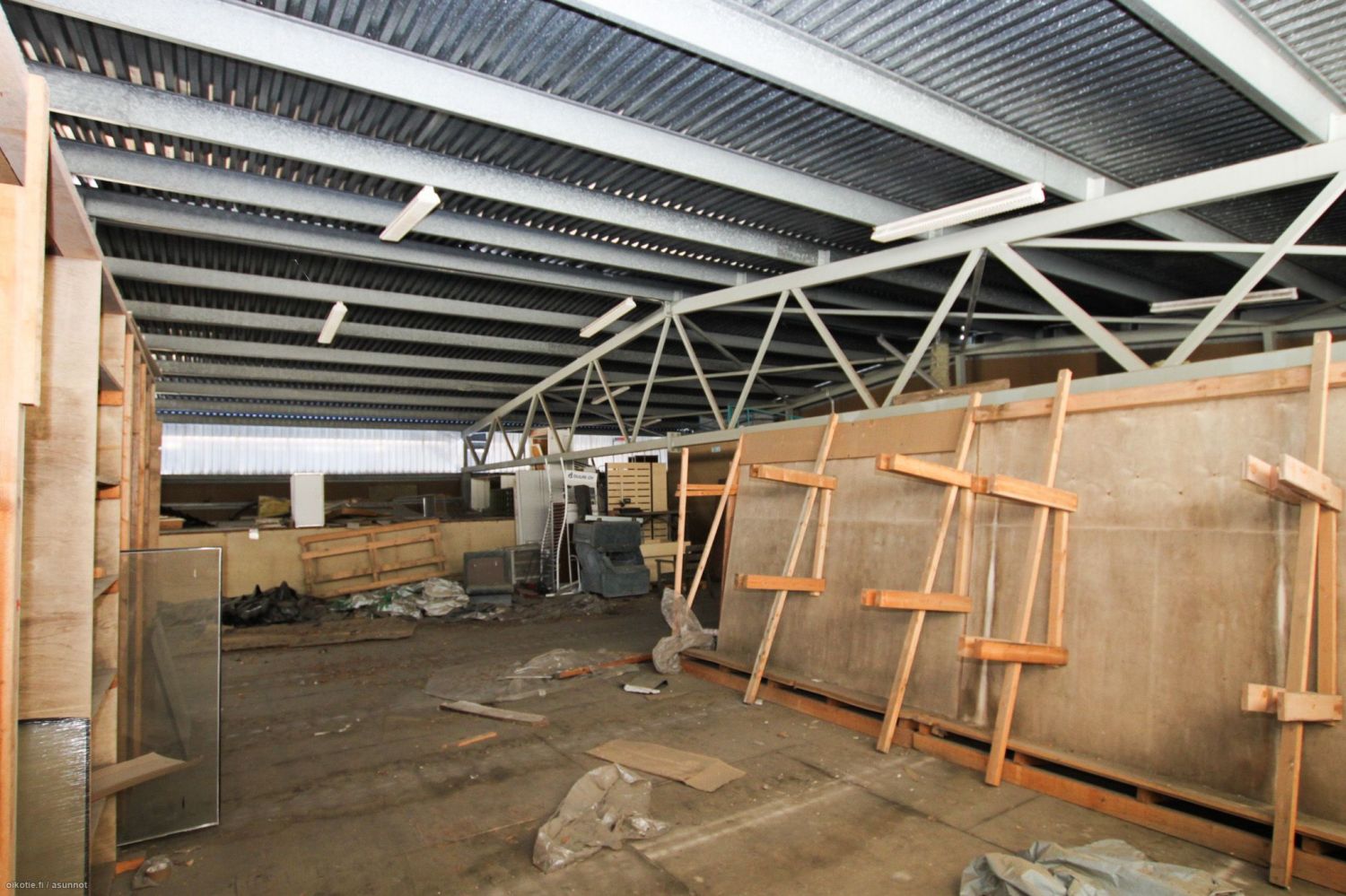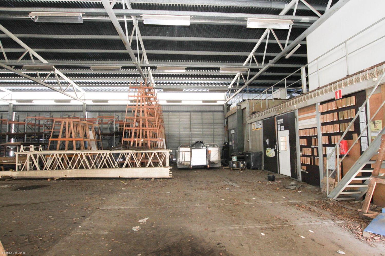Tämä kohde tarjoaa monikäyttöisen ratkaisun esimerkiksi yritykselle, joka tarvitsee sekä varasto- että toimitilaa isolla pihalla ja hyvillä kulkuyhteyksillä.