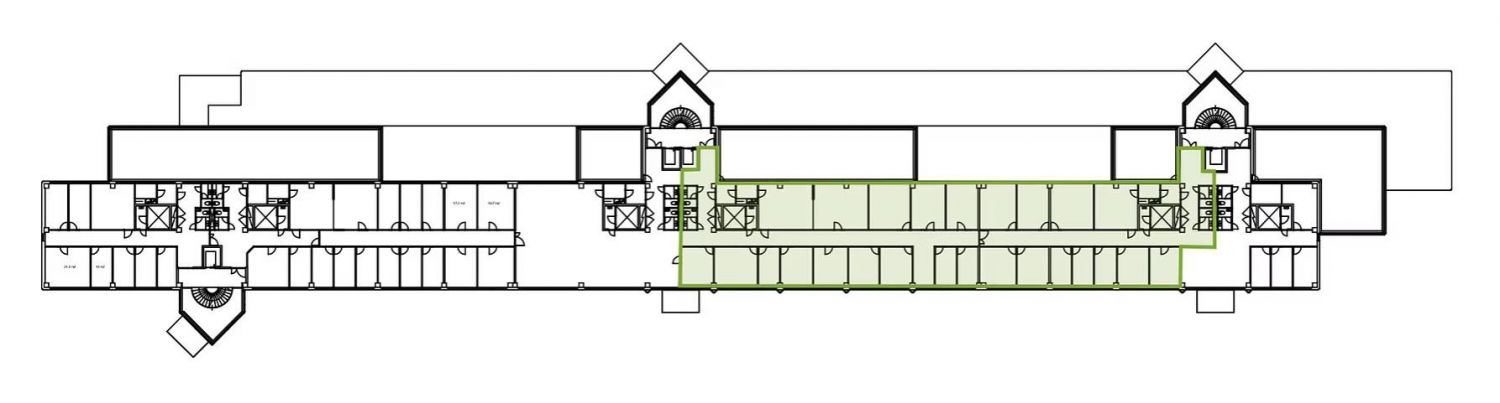 Tämä 550 m²:n toimistotila sijaitsee 5. kerroksessa, B- ja C-rappujen välillä. Tilasta avautuvat vehreät näkymät sisäpihalle, jotka tuovat luonnonvaloa ja rauhallisuutta työympäristöön. Turuntien puolella avautuvat avarat näkymät tarjoavat inspiroivan maiseman, joka lisää tilan viihtyisyyttä ja houkuttelevuutta. Toimistotila on jaettu huoneisiin, mikä tarjoaa yksityisyyttä ja rauhaa työskentelyyn.