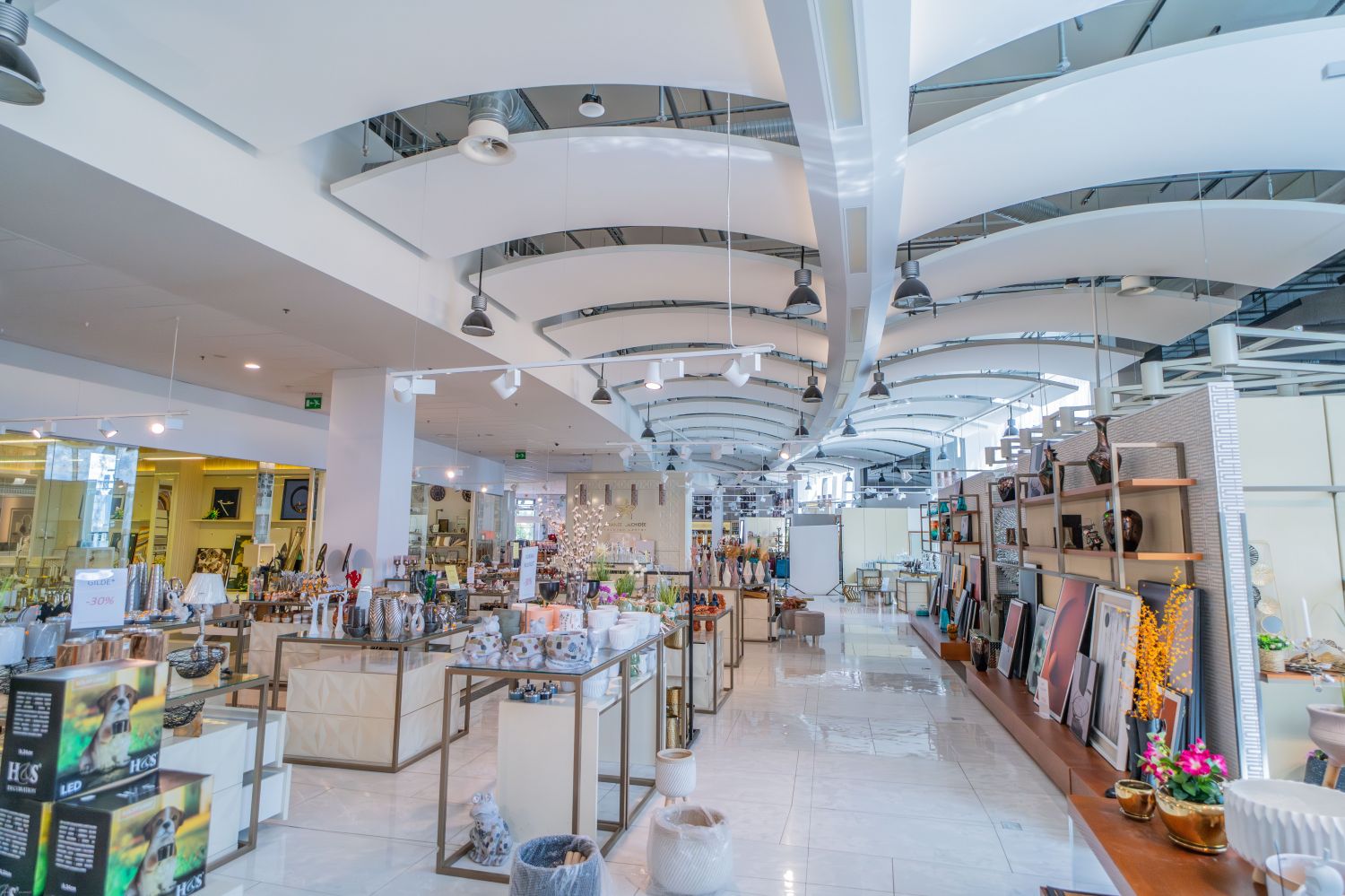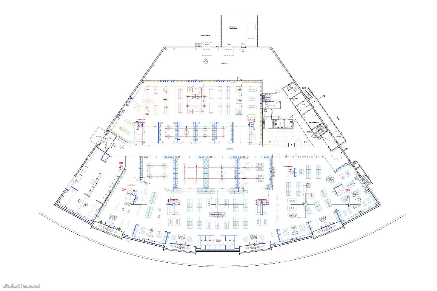 Suuret ikkunat tuovat myymälätilaan paljon luonnonvaloa ja reilu huonekorkeus luo avaruutta. Rakennuksen väliseinät ovat purettavissa yhtä kiinteä seinää lukuunottamatta, joten rakennus on myös erittäin monikäyttöinen.