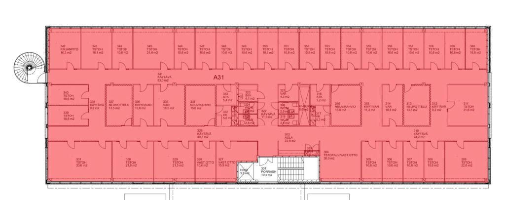 Tämä 850 m² toimistotila sijaitsee kiinteistön 3. kerroksessa. Tila on huoneellista, ja siinä on oma keittiö ja wc:t. Vapautuminen 1.11.2025.