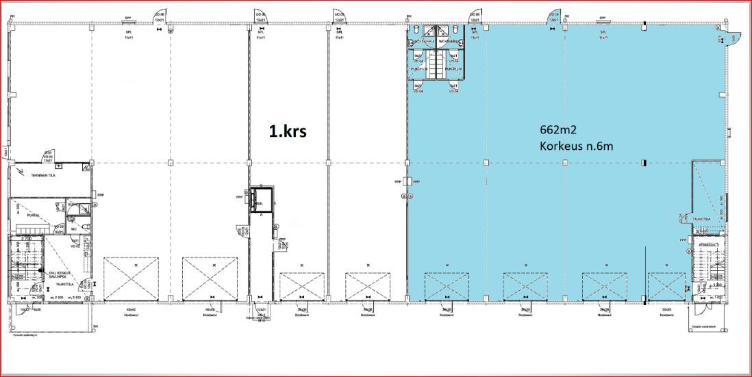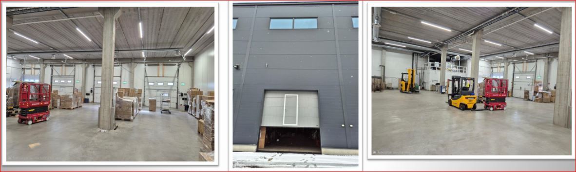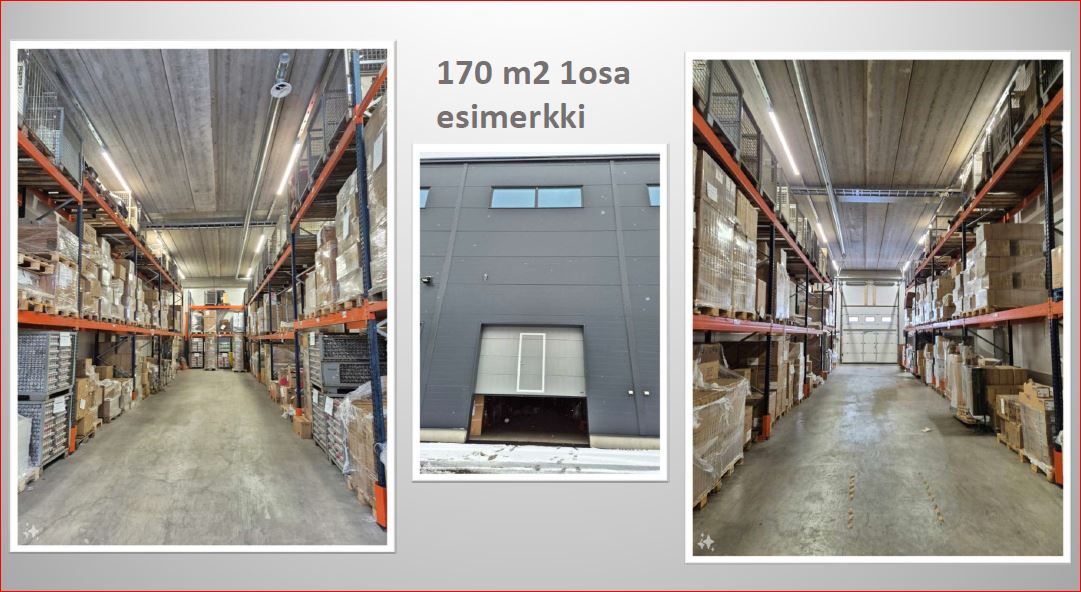 1. Krs 662 m2 nosto-ovet varasto- / tuotantotila. Koostuu 4 kpl n. 170m2 tilasta.