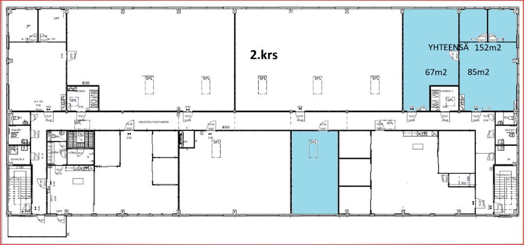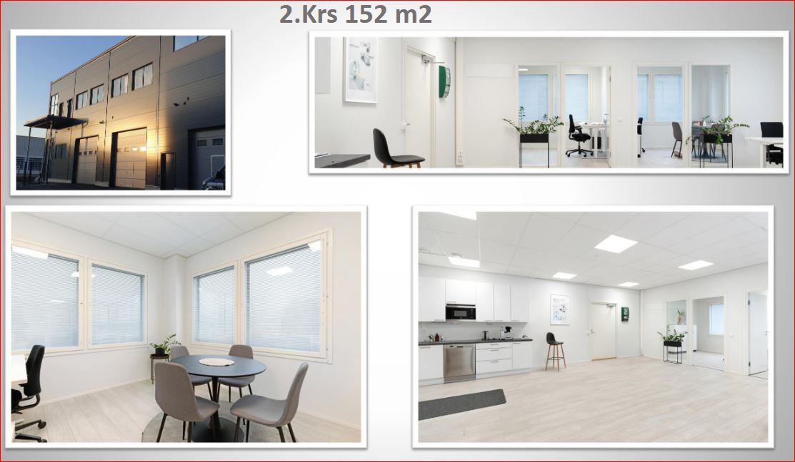 2.Krs 152 m2 kulmahuoneellinen toimistotila jossa erillinen tila väliovella toimisto tai varastokäyttöön.