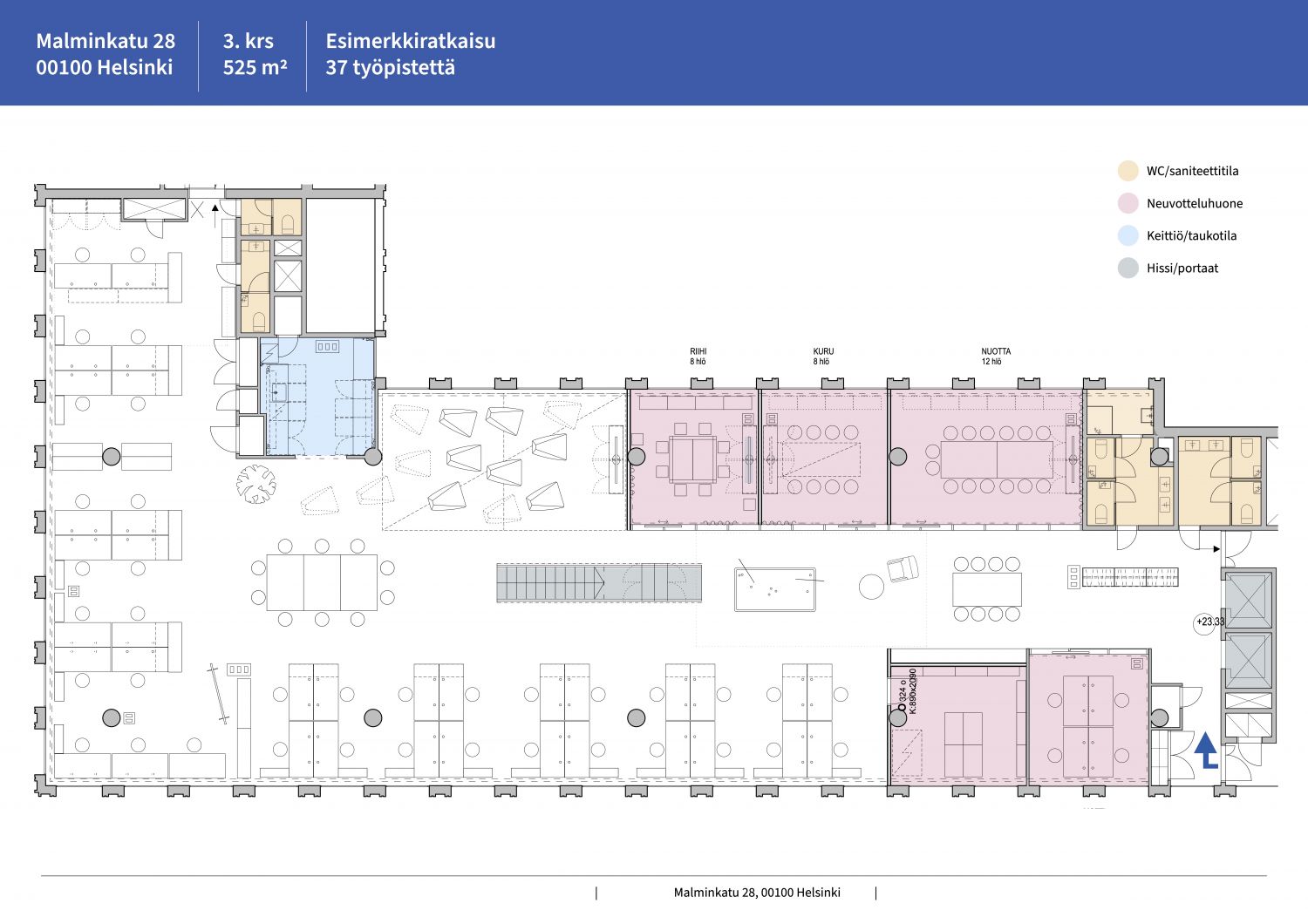 Laadukas kolmannen kerroksen 525 m² toimisto hyvällä sijainnilla Helsingin Kampissa.