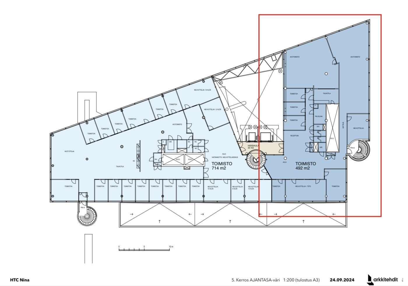 Vuokrattavana moderni 5. kerroksen 492 m2 toimistotila merellisessä Ruoholahdessa!