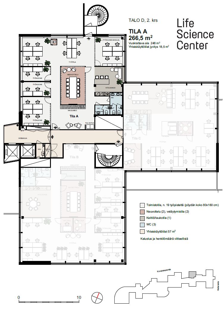 Life Science Center (LSC) eli Keilaranta 10-18 sijaitsee aivan nopeasti kasvaneen ja edelleen kehittyvän Keilaniemen ytimessä. Kyseessä on Suomen merkittävä keskittymä modernin työympäristön yli tuhannelle kansainvälisen tason huippuosaajalle mm. eri biotiede- ja teknologiayrityksessä. Keilaniemi on entisestään kehittyvä alue, jossa yhdistyvät monipuoliset palvelut, luonto, meri ja virkistysmahdollisuudet.