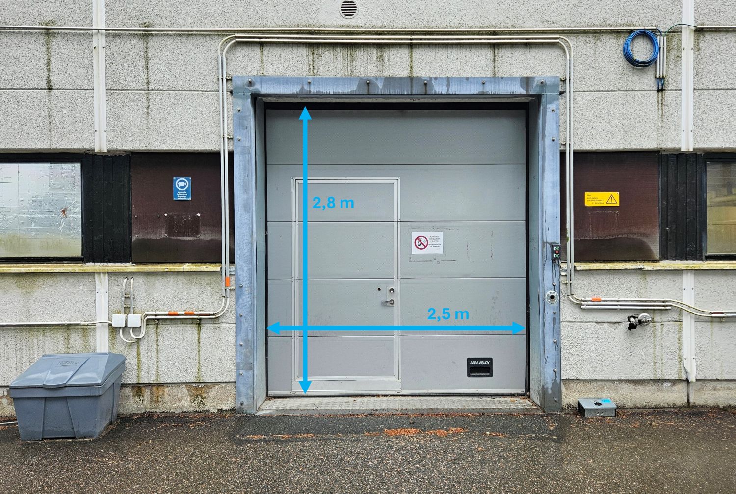 -Nosto-ovi 2,5*2,8 m, jossa myös käyntiovi