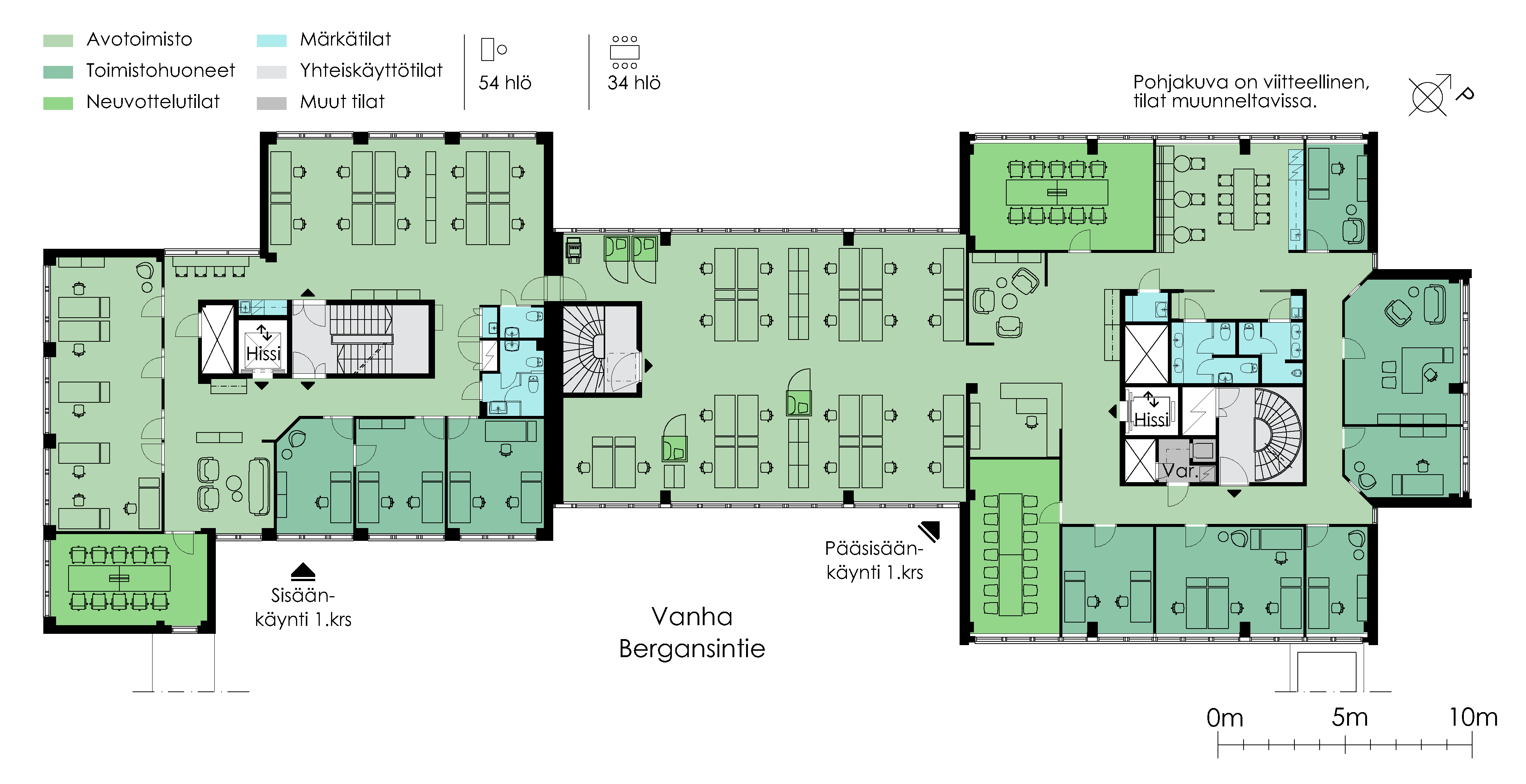 Peruskuntoista toimistotilaa, jossa sekä huoneita että avotoimistoa.