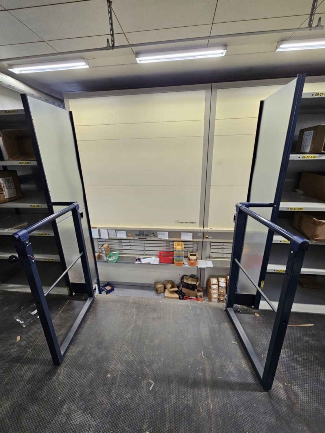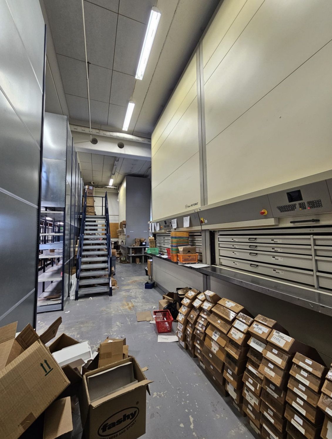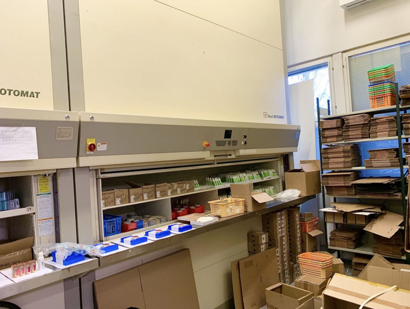 Tilan ehdoton valttikortti ovat automaattiset Paternoster-hyllystöt, jotka mahdollistavat pientavaran nopean ja ergonomisen käsittelyn. Ei enää pitkiä siirtymiä ja tavaran etsintää – järjestelmä tuo tuotteet suoraan käyttäjän ulottuville.