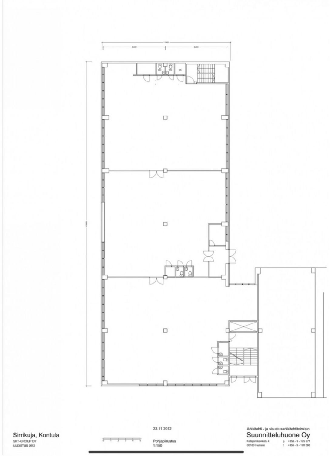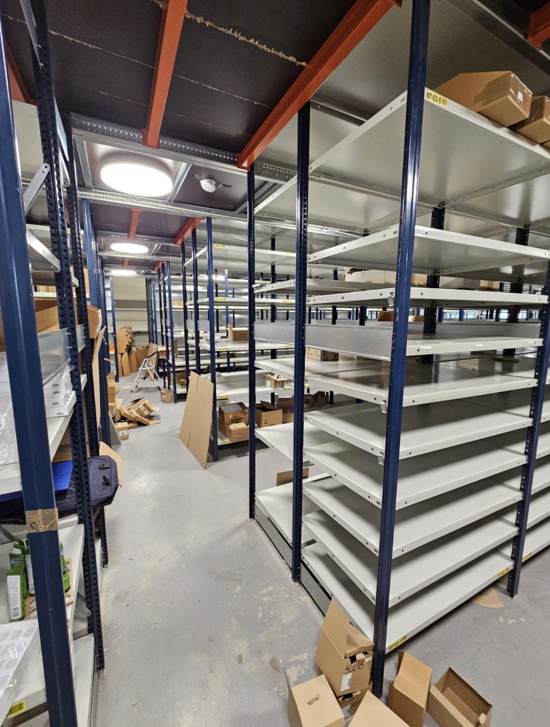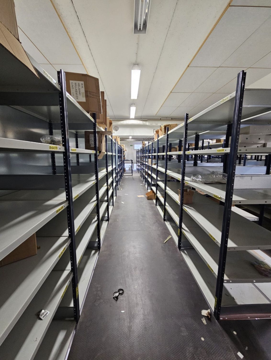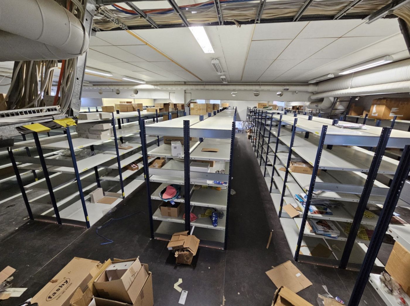 Tila sijaitsee hallin alimmassa lohkossa (pohjakuva). Kokonaisuudessaan 256 m2 varasto tarjoaa korkeutta, jota on hyödynnetty rakentamalla noin 3 metrin korkeudelle sijoittuva parvikerros. Parven alla on vielä 2,5 metrin korkuista käyttötilaa. Pientavarahyllyjen kanssa kokonaiskäyttöala nousee lähes 400 m2:iin – poikkeuksellisen monipuolinen ja tehokas ratkaisu.