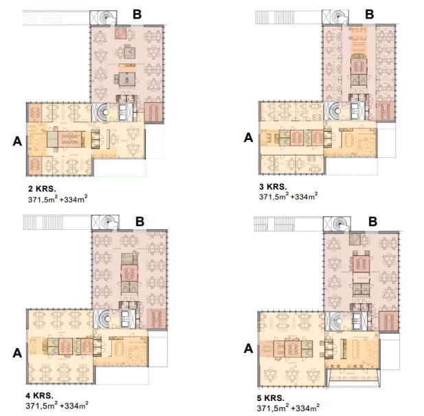 Kiinteistössä on yhteensä 2824 m² vuokrattavaa toimistotilaa, joka jakautuu kerroksiin 2-5. Kerroskoko on 706 m², ja ne on mahdollista vuokrata yhdessä tai erikseen. Tiloissa on monipuolisesti sekä huoneita että avotilaa. Lisäksi kerroksissa on useammat keittiö- ja wc-tilat, joten niiden jakaminenkin onnistuu.