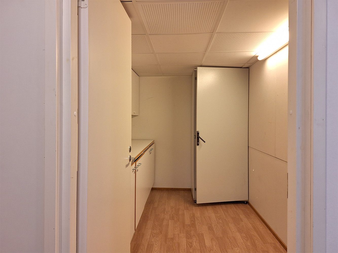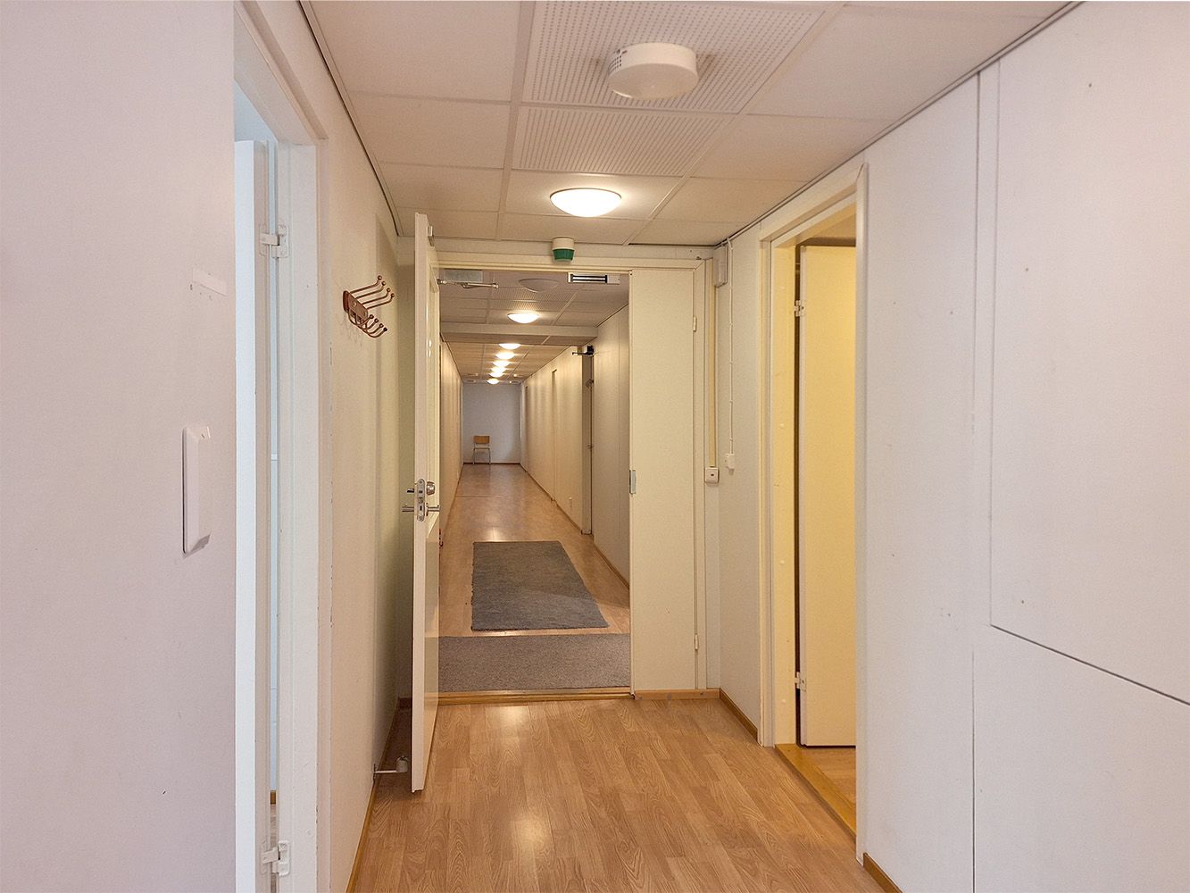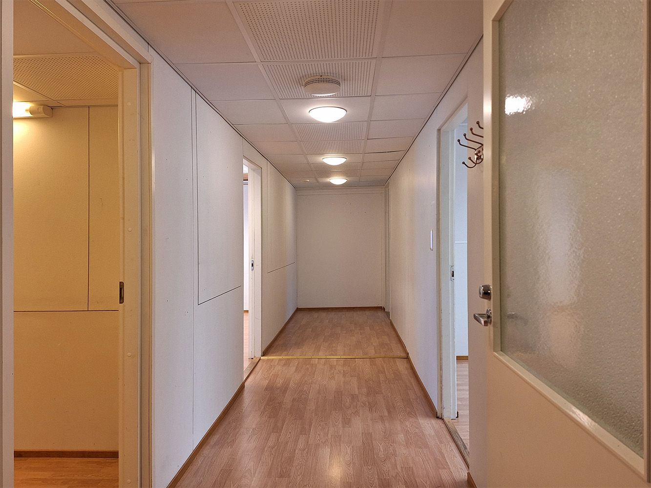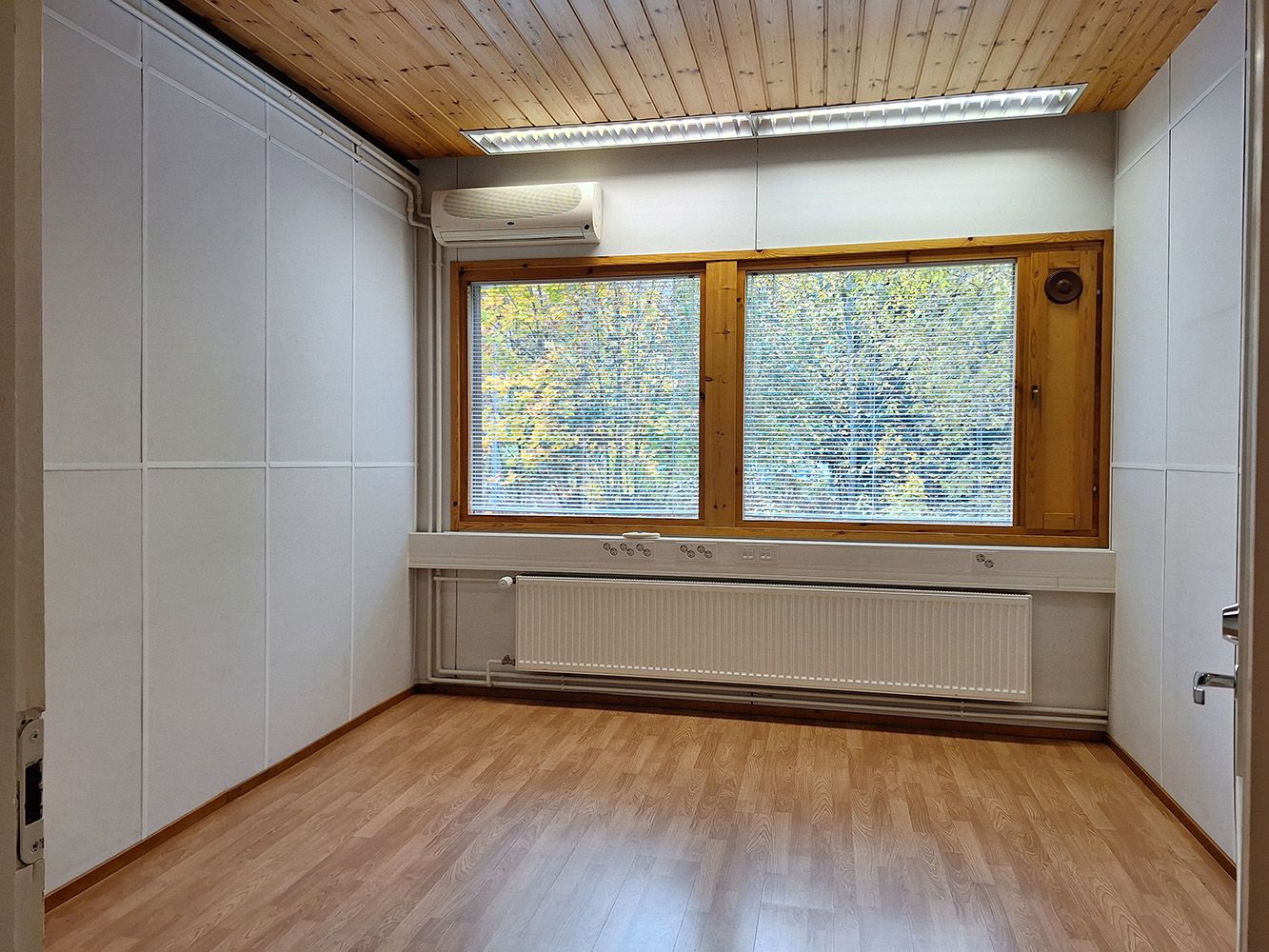 Noin 100-neliöinen tila on useiden ikkunoiden ansiosta valoisa. Huoneistossa on 3 erillistä toimistohuonetta, yksi pienempi kopiokonehuone ja pieni avokeittiö/taukotila sekä kaksi wc ja siivouskomero. Toimistotilassa on viilennystä varten asennettu ilmalämpöpumppu.