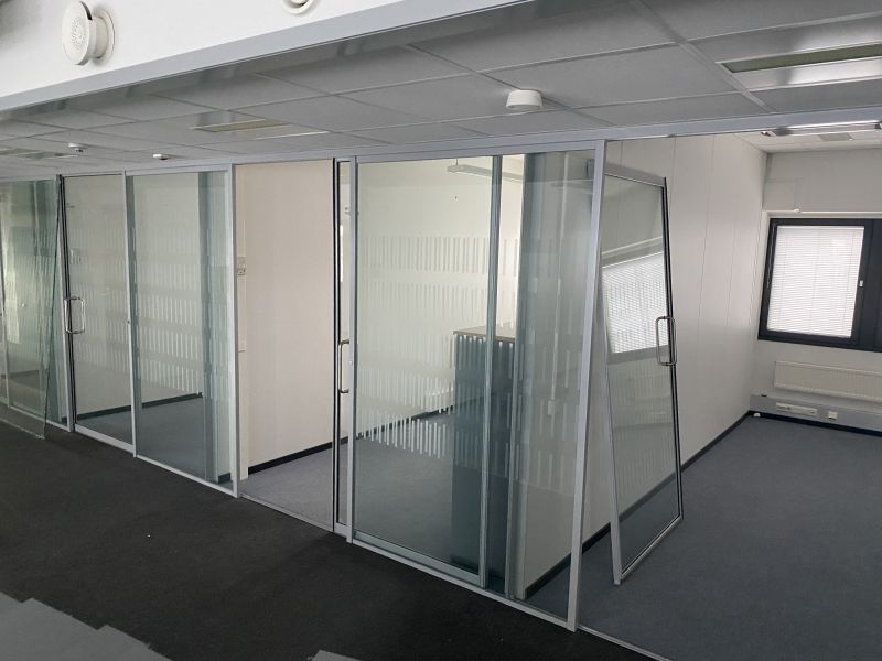 Toimistohuoneissa peruskorjauksessa uusittu joko Lasi seinät käytävän suuntaan ja/tai ääniieritettyjä umpi toimistoja. Sekä maitolasein varustettuja neuvottelu tiloja sekä Turvaluokiteltuja umpii toimisto tiloja.