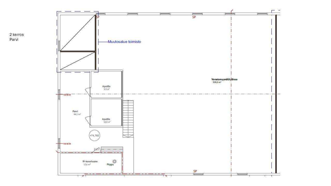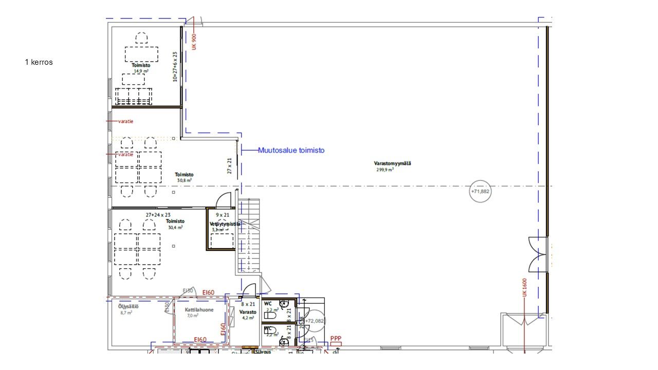 Myymälätilan päädyssä on kaksi nosto-ovellista varastoa, joista toinen on nyt vuokrattu ja toinen vapautuu sopimuksen mukaan.
