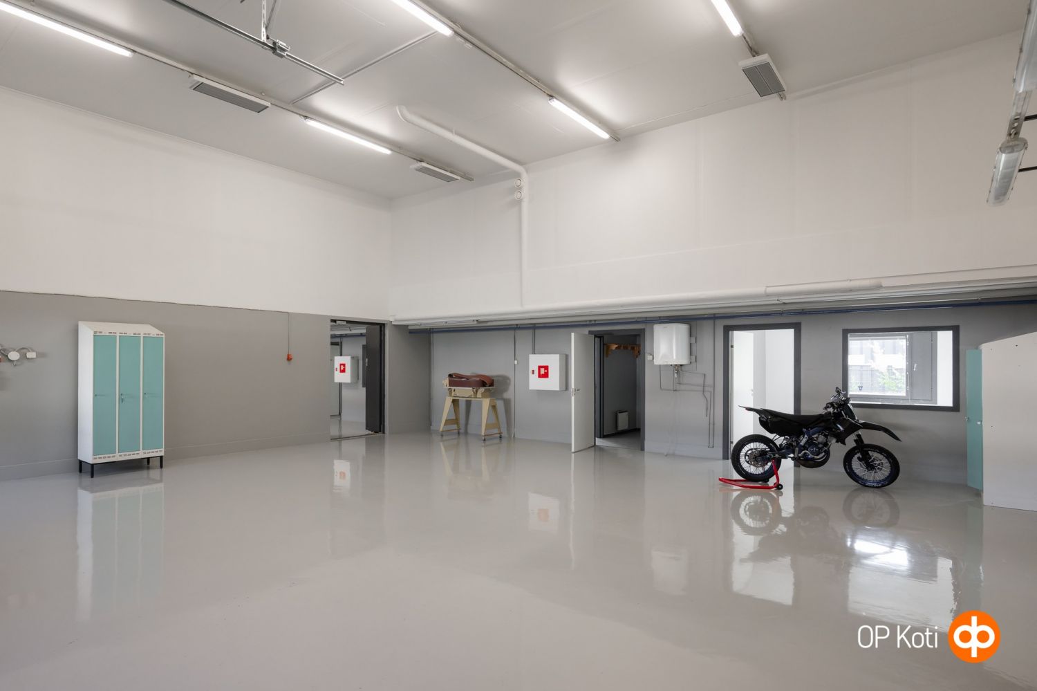 Muuramen Ratastiellä vuokrattavana ja myytävänä juuri pintaremontoitu teollisuushalli, jossa kolme erillistä halliosiota (n. 120, 140 ja 140 m2) sekä toisessa kerroksessa n. 110 m2 toimisto-/neuvottelu-,sos/saunatilat. Rakennuksen kerrosala n. 590 m2. Kussakin hallissa omat wc.t, toimisto/taukotilat, ilmalämpöpumppu lämmitys/viilennys, epoksilattiat, omat sähköliittymät, vesimittari, ledivalot, nosto-ovet. Reunimmaisessa 140 m2 hallissa lisäksi purunpoistojärjestelmä, paineilmaverkko ja oma koneellinen iv,. Omalla n. 2200 m2 tontilla. Mahdollisuus vuokrata koko kiinteistö tai osissa (vaikka yksi 120m2 tila). Soita ja sovi esittely. Vuokra koko hallikiinteistölle 3400 €/kk (alviton tila), 140 m2 halleille 1000 €/kk ja 120 m2 900 €/kk. Kiinteistö mahdollista myös ostaa.