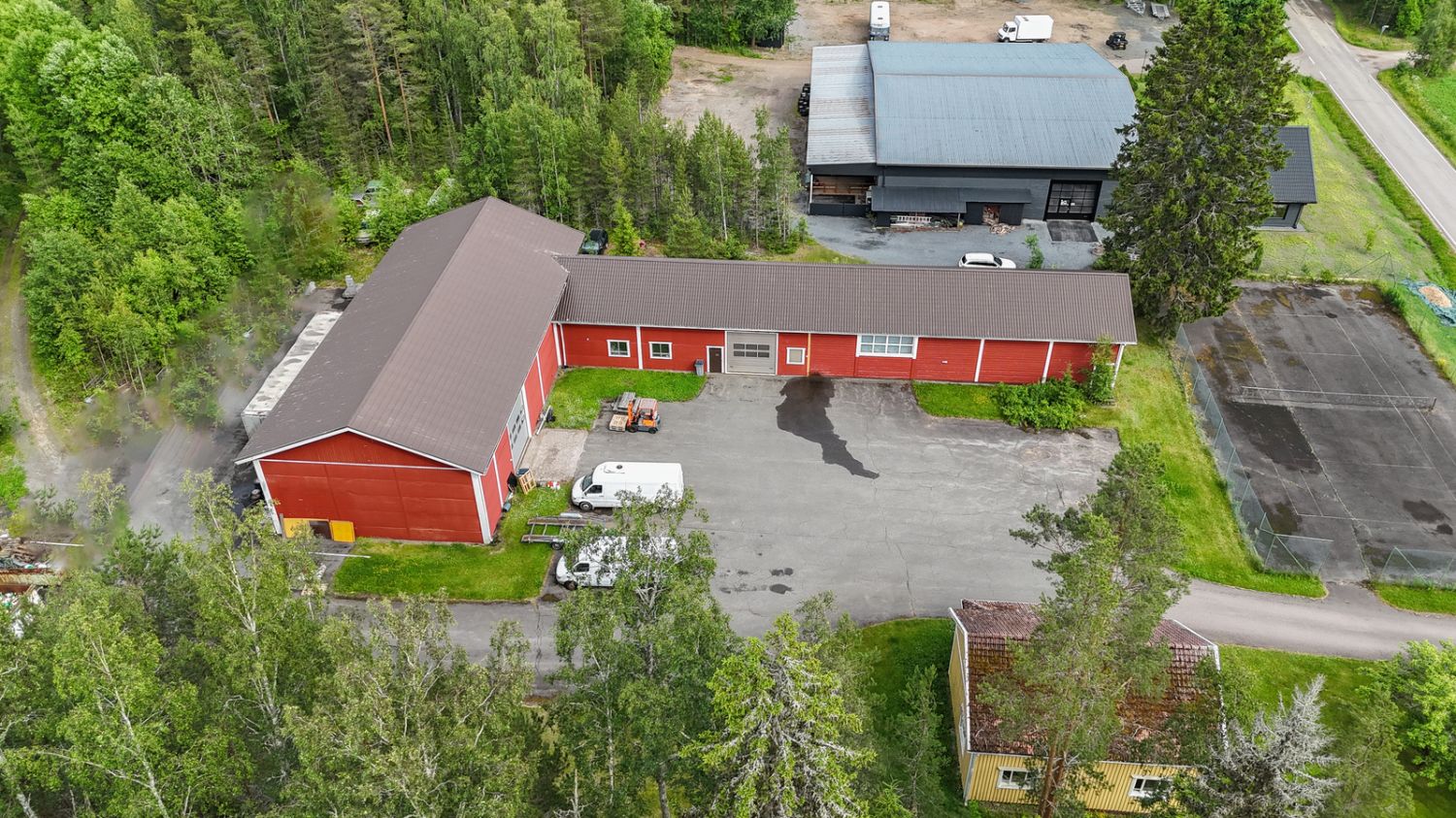 Hallirakennus valmistunut vuonna 1983 ja laajennettu vuonna 1989. Tämän jälkeen rakennusta huollettu säännöllisesti. Rakennuksen kerrosala noin 642 neliötä. Hallitilan sisäseinät peltiverhoiltu, lattioissa epoksimaali. Kolmen hallitilan lisäksi varasto/kylmiötilaa sekä sosiaali- ja toimistotilat. Tiloissa toiminut pitkään elintarvikealan yritys, mutta tilat muuntuvat myös moneen muuhun käyttötarkoitukseen. Suuri asfalttipiha, jossa lisäksi toimistokäytössä ollut entinen asuinrakennus. Asfaltoitua aluetta yhteensä noin 1700 neliötä. Tontti mahdollistaa myös hallirakennuksen läpiajettavaksi muuttamisen. Tontilla lisäksi tenniskenttä, joten liikunnastakin pääsee nauttimaan omalla pihalla. Sähköliittymä 3X63a, kaupungin vesijohto- ja viemäriliittymät. Lisäksi kauppaa seuraa suurin osa irtaimistosta. Hyvin hoidettu kokonaisuus tarjolla. Tule tutustumaan!