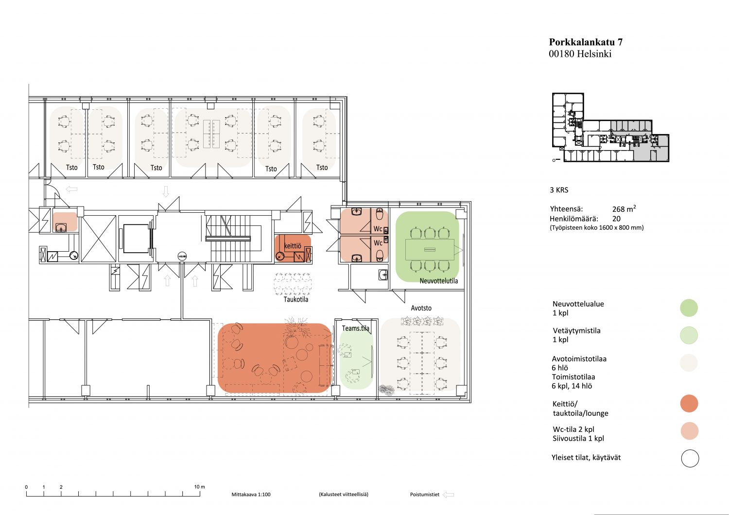 Tämä 268 m² toimisto sijaitsee kiinteistön 3. kerroksessa.
