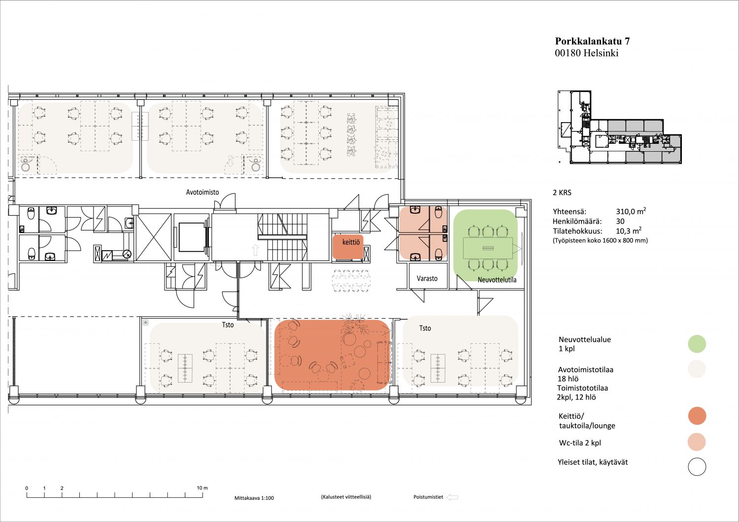 Tämä 310 m² toimisto sijaitsee kiinteistön 2. kerroksessa.