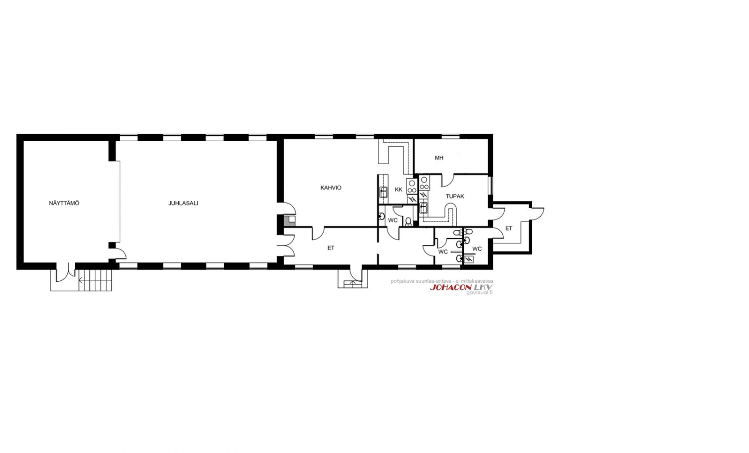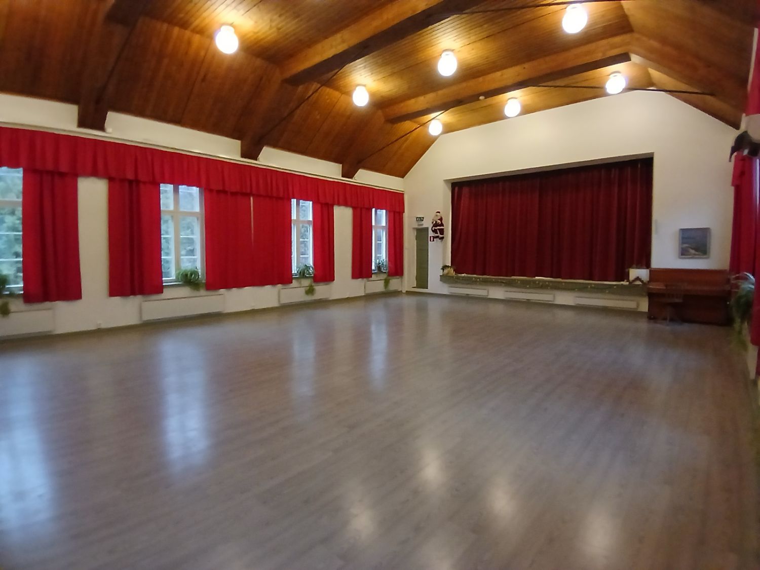 Juhlasali jossa kiinteä näyttämö. Salin yhteydessä kahviotila ja tarjoilukeittiö. Rakennukseen on esteetön sisäänkäynti. Lämmitysmuotona suorasähkö ja varaava takka/leivinuuni.