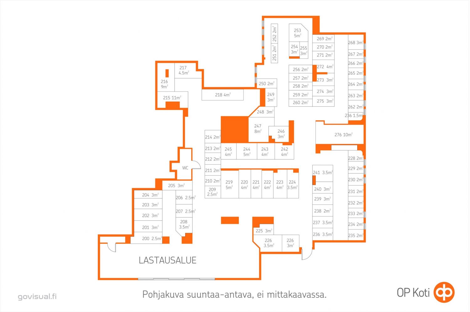 Tilassa 76 pellitettyä pienvarasto komeroa, joiden pinta-alat pääosin 2 -5m².