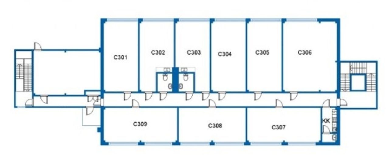 kerroksessa toimistotiloja myynnissä. Erikokoisia toimistotiloja tarjolla (45-82,5 m²) jotka mahdollista yhdistää tai voit vaikka ostaa koko 3. kerroksen toimistotilat yhteensä 494,5 m². Yhteisellä alueella on kaksi WC:tä ja keittiötila.
