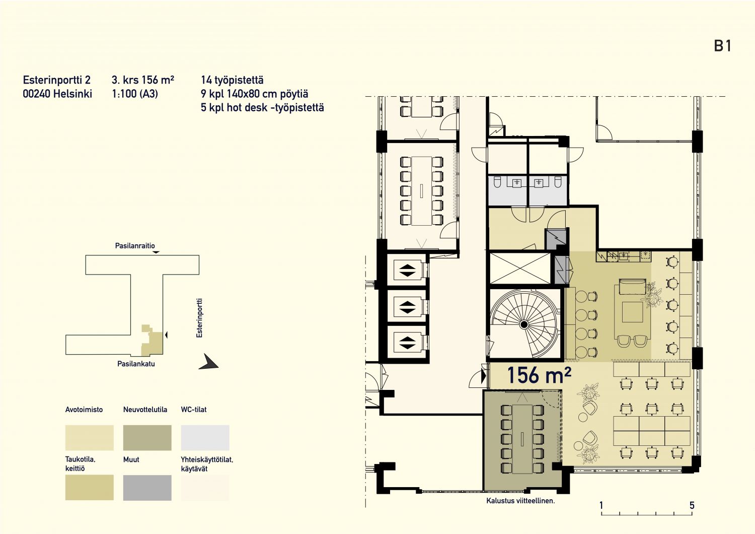 Esterinportti 2:ssa, aivan Pasilan ytimessä, on vuokrattavana tehokas ja moderni 156 m² toimisto. Tila sijaitsee kiinteistön kolmannessa kerroksessa ja tarjoaa erinomaiset puitteet 14 työpisteelle. Toimistossa on valoisa avotila, erillinen neuvotteluhuone sekä viihtyisä taukotila keittiöllä. Kalustusratkaisut mahdollistavat tehokkaan työskentelyn niin tiimityössä kuin rauhallisissa palavereissa.