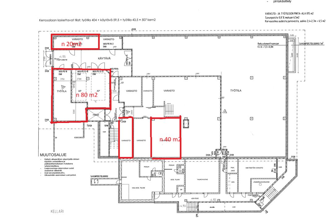 Vuokrataan Herttoniemessä n 40 m2 kellarivarastotilaa, ei sovellu työtilaksi. Korkeus n 2,2 m. Autolla pääsy ulko-ovelle. HUOM ! Katso pohjakuvaa, vapaa tila on rakennuksen keskellä oleva tila.