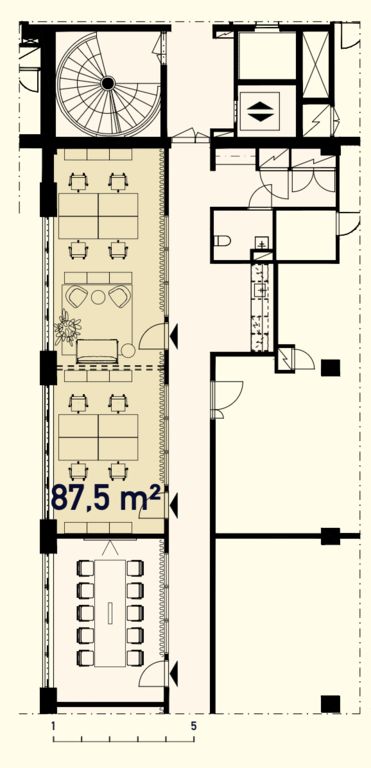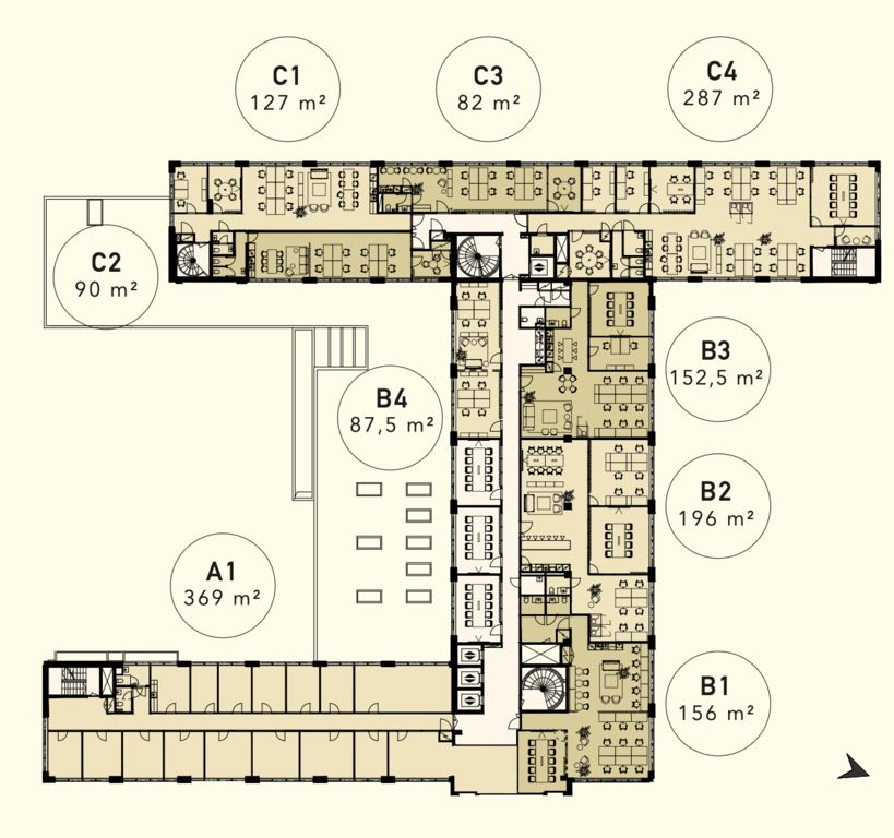Kiinteistön kolmanteen kerrokseen valmistuu marraskuussa 2025 täysin uudistetut ja sisustussuunnittelijan konseptoimat pientoimistotilat. Tarjolla on eri kokoisia toimitiloja 82 m² aina 287 m² asti, jotka kaikki on suunniteltu huolella pohjakuvien mukaisesti. Kaikissa tiloissa on omat wc-tilat ja keittiö. Tilojen yhteyteen tulee kolme yhteiskäyttöneuvotteluhuonetta. Kuvat ovat yleiskuvia kiinteistön tiloista.