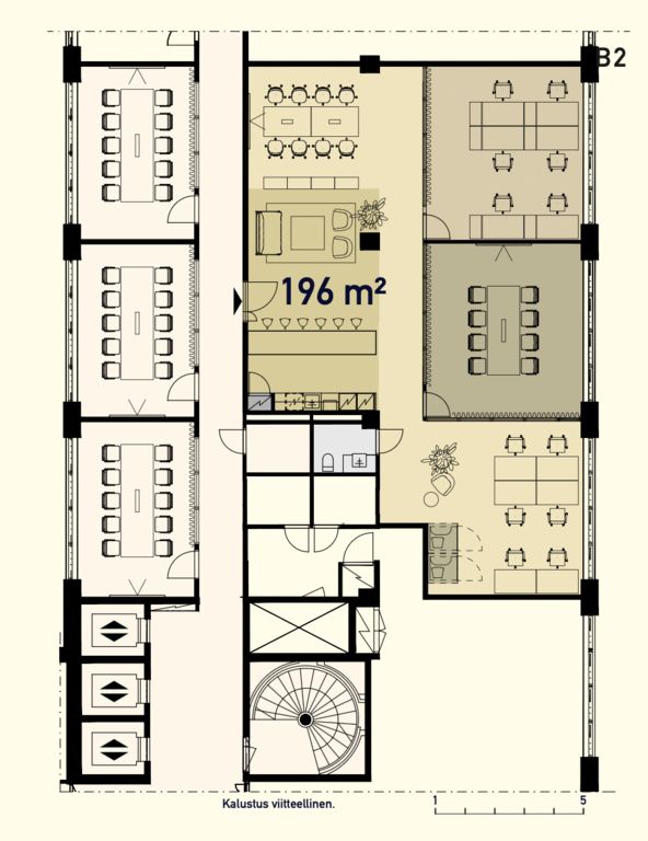 Kiinteistön kolmanteen kerrokseen valmistuu marraskuussa 2025 täysin uudistetut ja sisustussuunnittelijan konseptoimat pientoimistotilat. Tarjolla on eri kokoisia toimitiloja 82 m² aina 287 m² asti, jotka kaikki on suunniteltu huolella pohjakuvien mukaisesti. Kaikissa tiloissa on omat wc-tilat ja keittiö. Tilojen yhteyteen tulee kolme yhteiskäyttöneuvotteluhuonetta. Kuvat ovat yleiskuvia kiinteistön tiloista.