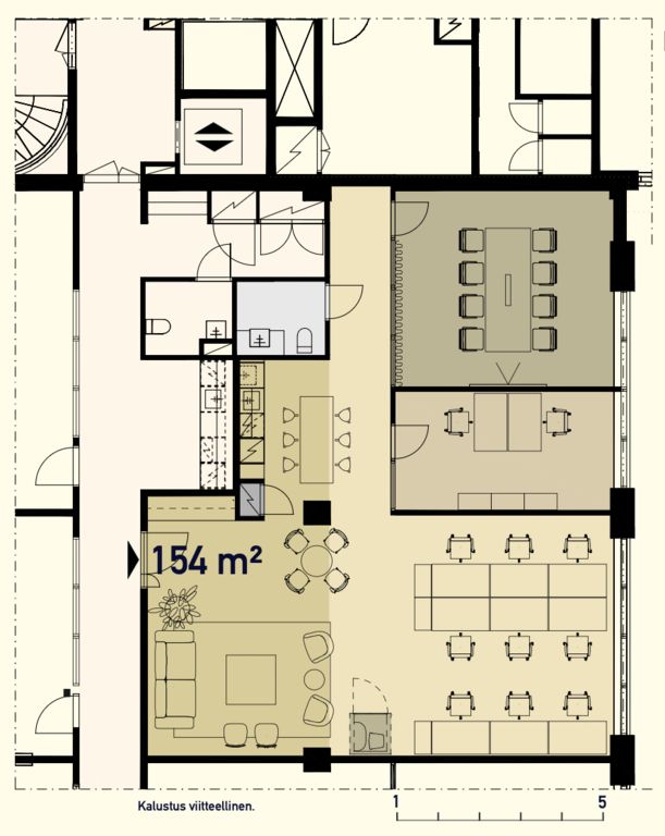 Tämä muuttovalmis 154 m² toimisto sijaitsee kiinteistön 3. kerroksessa. Tilasta löytyy avonaista työskentelytilaa, uusi upea avokeittiö sekä pienempi työskentelytila ja neuvotteluhuone.