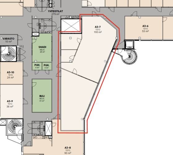 Vuokrataan Helsingin Munkkivuoresta kolmannen kerroksen 193 m² toimistotila A3-7.