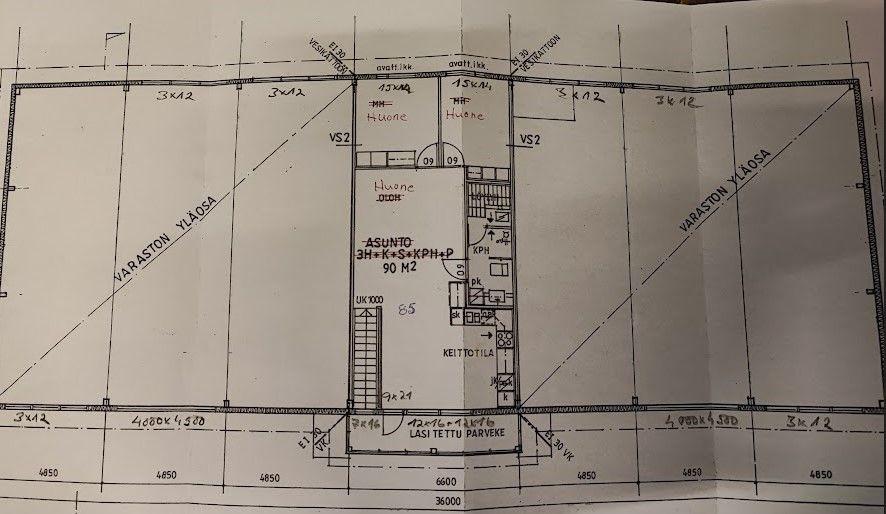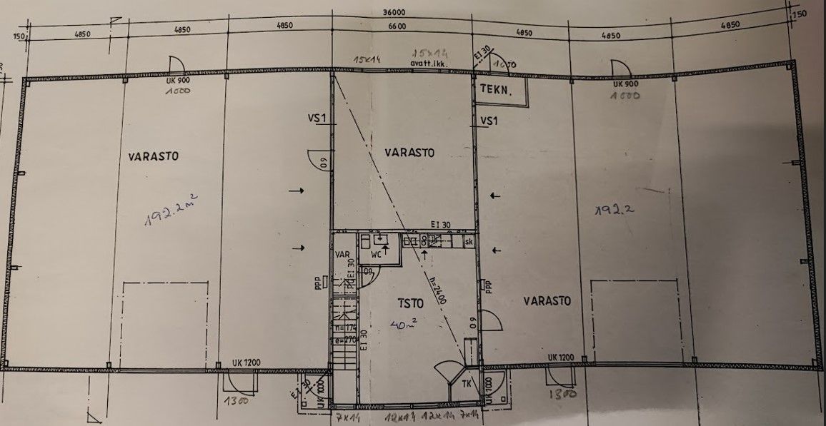 Varaston vapaa korkeus on 5 m. Varastossa on korkea nosto-ovi, Varaston yhteydessä on kiiinteistön toisessa kerroksessa siisti toimiva toimisto. Jossa on on kaksi erillistä toimisto huonetta, erillinen toimistoksi sopiva avotila. Toimistossa on hyvä suuri avokeittiö, sosiaalitila ja sauna.