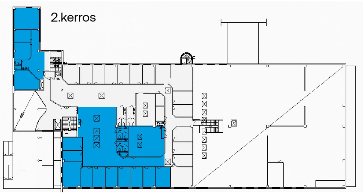 Vuokrataan 2. kerroksen toimistotila, jossa useita huoneita. Tila on mahdollista jakaa ja tilaa voidaan muokata seuraavan käyttäjän tarpeiden mukaan.