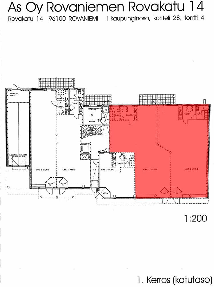 Vuokrattavana 224 m² liiketilaa Rovaniemen keskustassa, asuinkerrostalon kivijalassa.