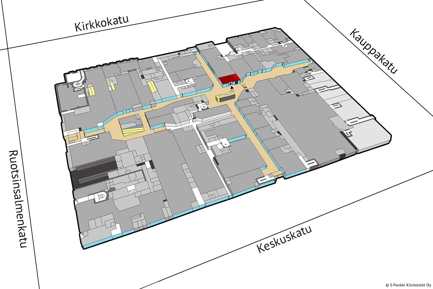 Vuokrattavissa liiketila Kauppakeskus Pasaatin ensimmäisessä kerroksessa hyvien liikenneyhteyksien varrella aivan Kotkan ytimessä.