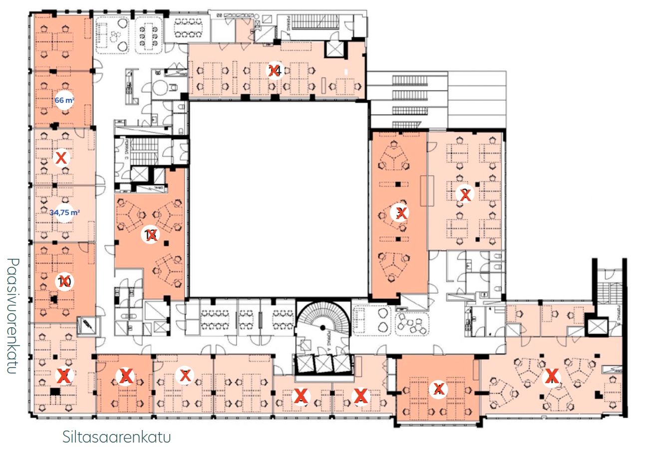 Työpisteiden lukumäärä perustuu havainnekuvaan tehtyyn luonnokseen.