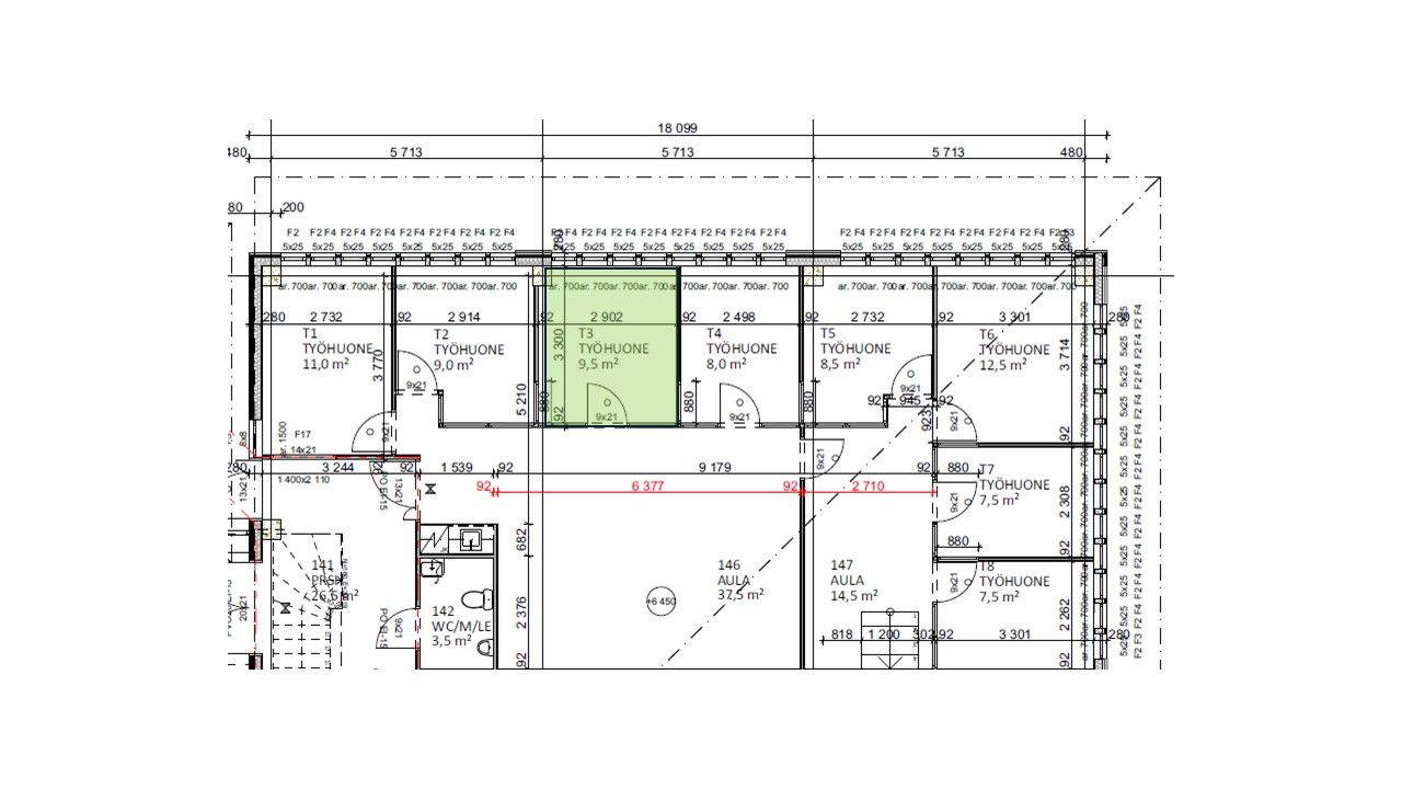 Vapautumassa siisti 9,5m2 toimistohuone 1. kerroksessa.
