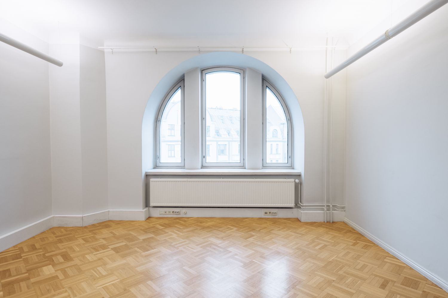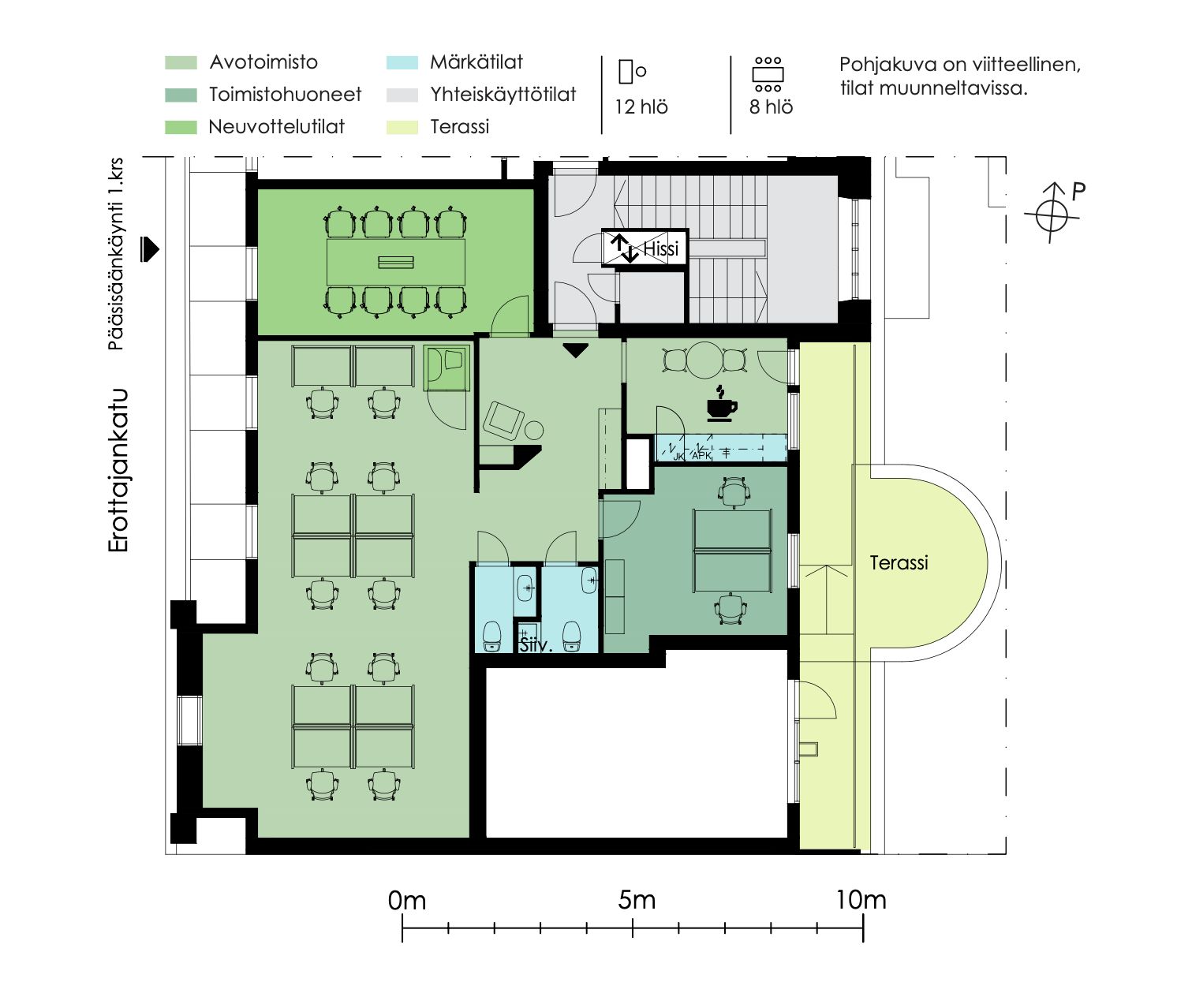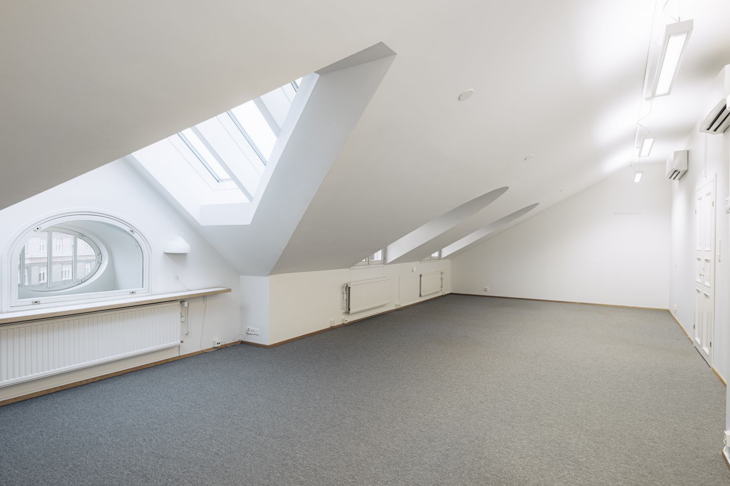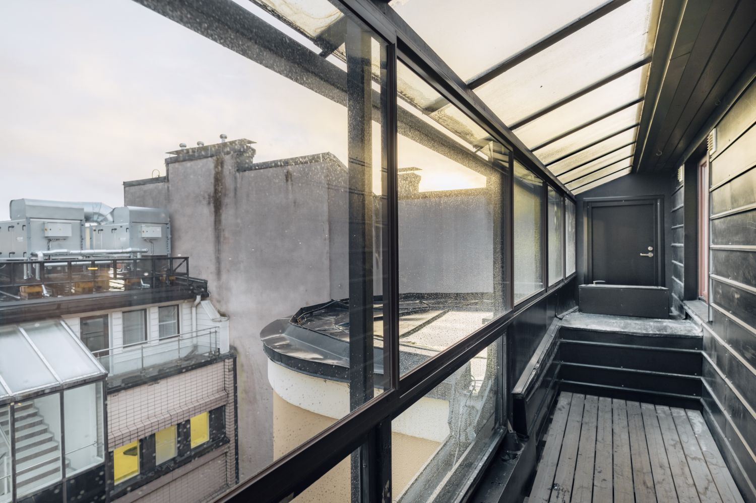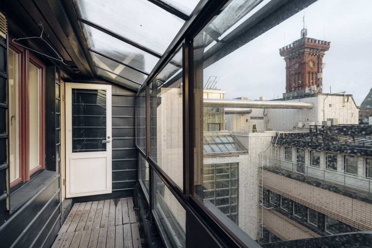 Siisti ylimmän kerroksen toimistotila. Tilassa on myös oma parveke sisäpihanäkymillä.