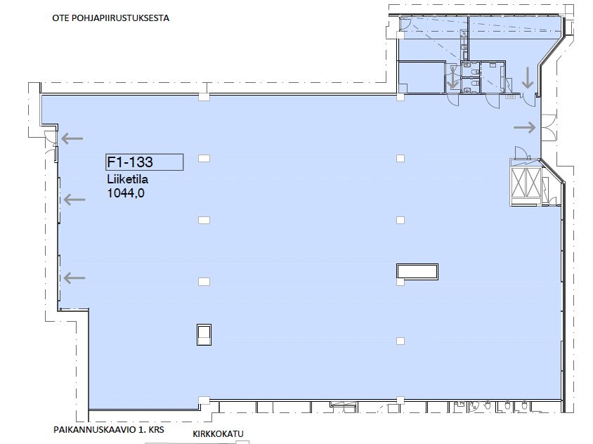 Tämä 1044m2 liiketila sijaitsee kiinteistön 1. kerroksessa.