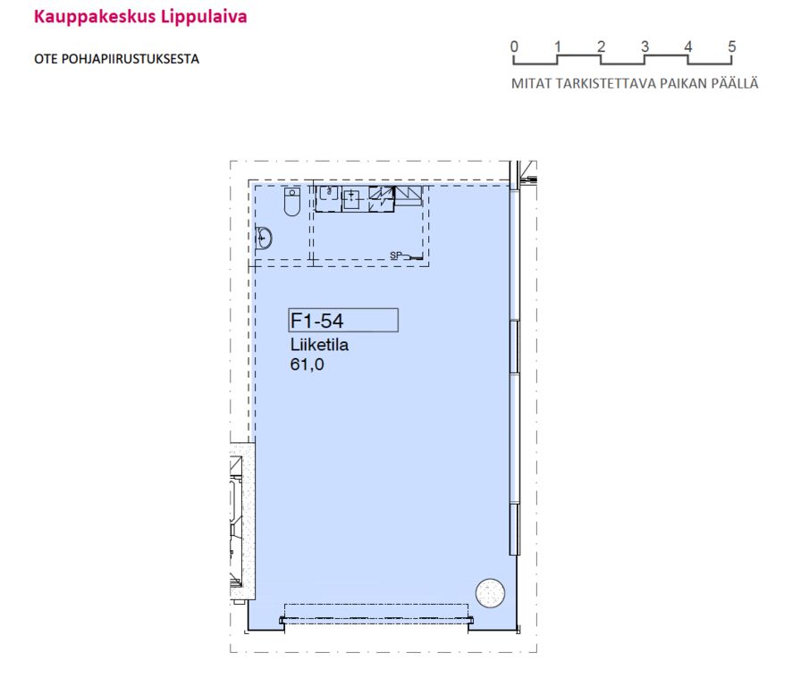 Tämä 61 m² tila sijaitsee kiinteistön 1. kerroksessa. Ei sovellu ravintola-, kahvila- tai kampaamotoimintaan. This premise is not suitable for a restaurant, cafeteria or a barber shop.