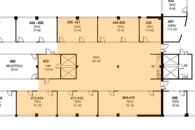 Tämä 275 m² toimistotila sijaitsee kiinteistön 4. kerroksessa. Tila koostuu useammasta toimistohuoneesta. Toimistossa on oma keittiö. Tilat ovat muokattavissa yrityksen tarpeiden mukaan.