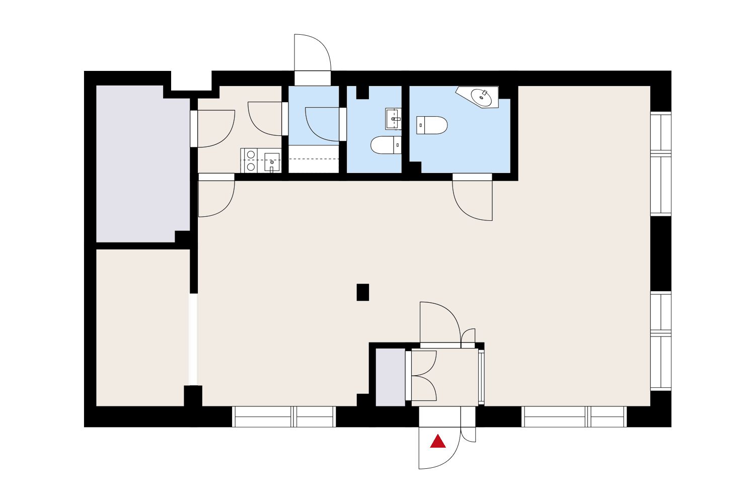 Tilassa on osittain erikoiskorkea huonekorkeus, mikä mahdollistaa näyttävän sisustuksen ja lisää käyttömukavuutta esimerkiksi myymälä- tai asiakaspalvelutilana. Tilan pohjaratkaisu on joustava ja muokattavissa eri käyttötarkoituksiin – sopii erinomaisesti mm. myymäläksi tai toimistoksi. Ei sovellu ravintolaksi tai kahvilaksi.
