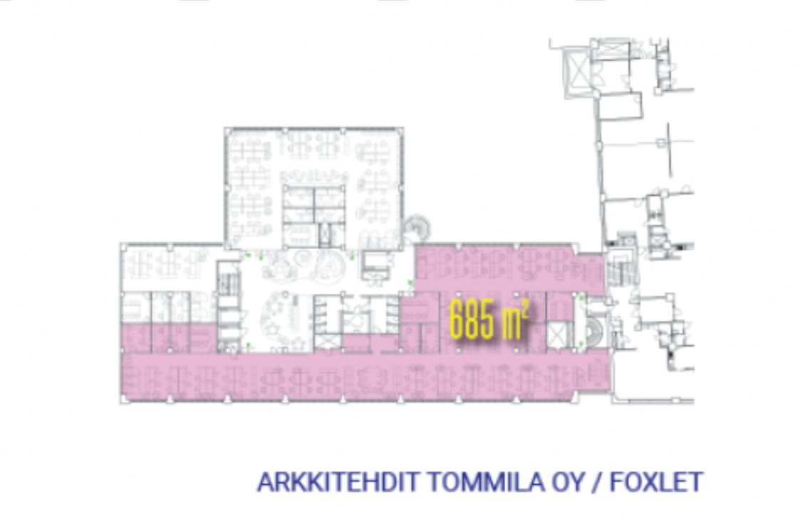 Vuokrattavana 5. kerroksen valoisaa, edustavaa toimistotilaa. Toimistossa on avotila, 7 työhuonetta, 9 puhelinkoppia, oma keittiö. Tila muokataan vuokralaisen tarpeen mukaan.