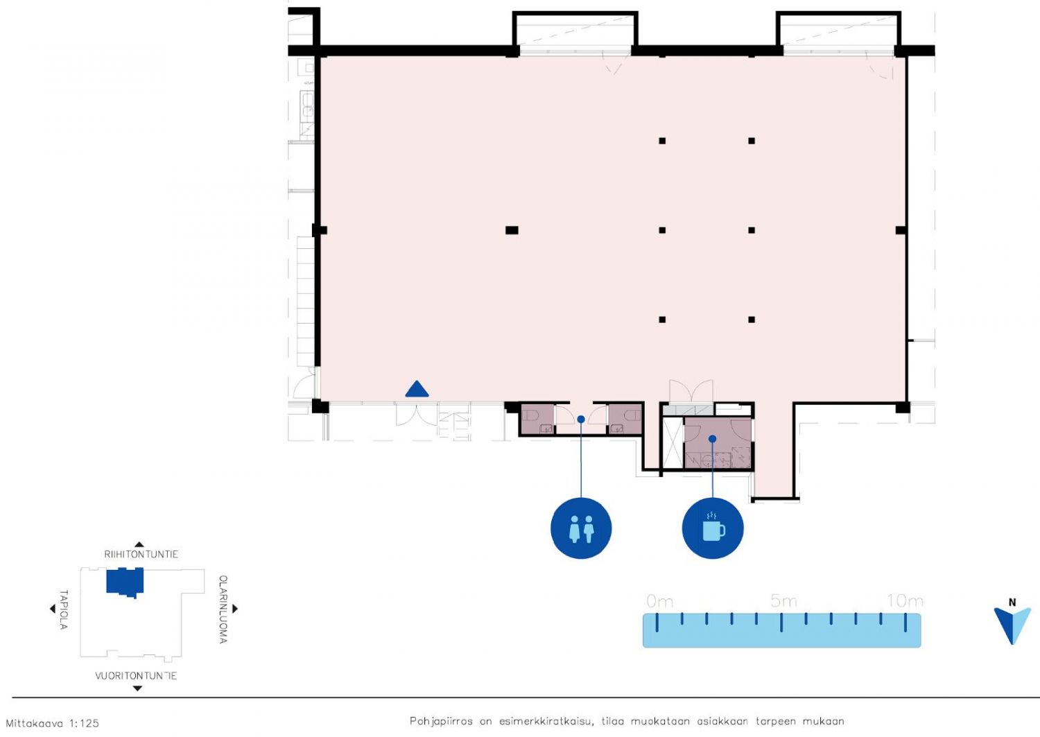 Toimisto koostuu avarasta avotilasta ja erillisestä taukotilasta. Tilaan kuuluu myös omat wc tilat. Tilaa voidaan muokata tarpeiden mukaisesti.