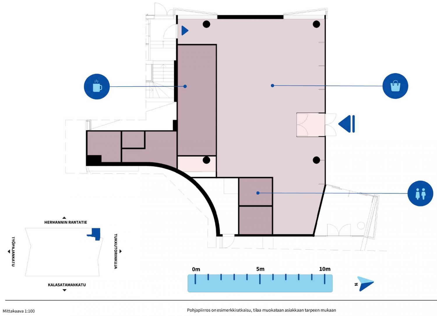 Vuokrataan Helsingin Kalasatamasta katutasosta 181 m² liiketila omalla sisäänkäynnillä.
