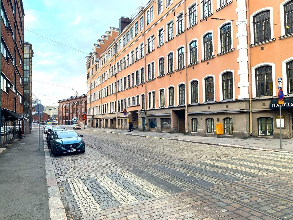 Pysäköintitilaa on talon parkkihallista ja kiinteistön sisäpihalta. Viihtyisällä alueella on paljon laadukkaita ravintoloita ja kahviloita, sekä raitiovaunu kulkee talon vierestä.