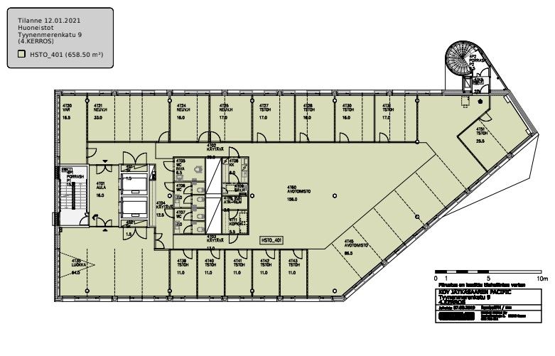 Siisti toimistotila, jossa useita työhuoneita sekä avotilaa. Tilajakoa mahdollista muokata käyttäjän tarpeiden mukaan. Tila on n. 658 m2 ja sijaitsee kiinteistön 4.kerroksessa.