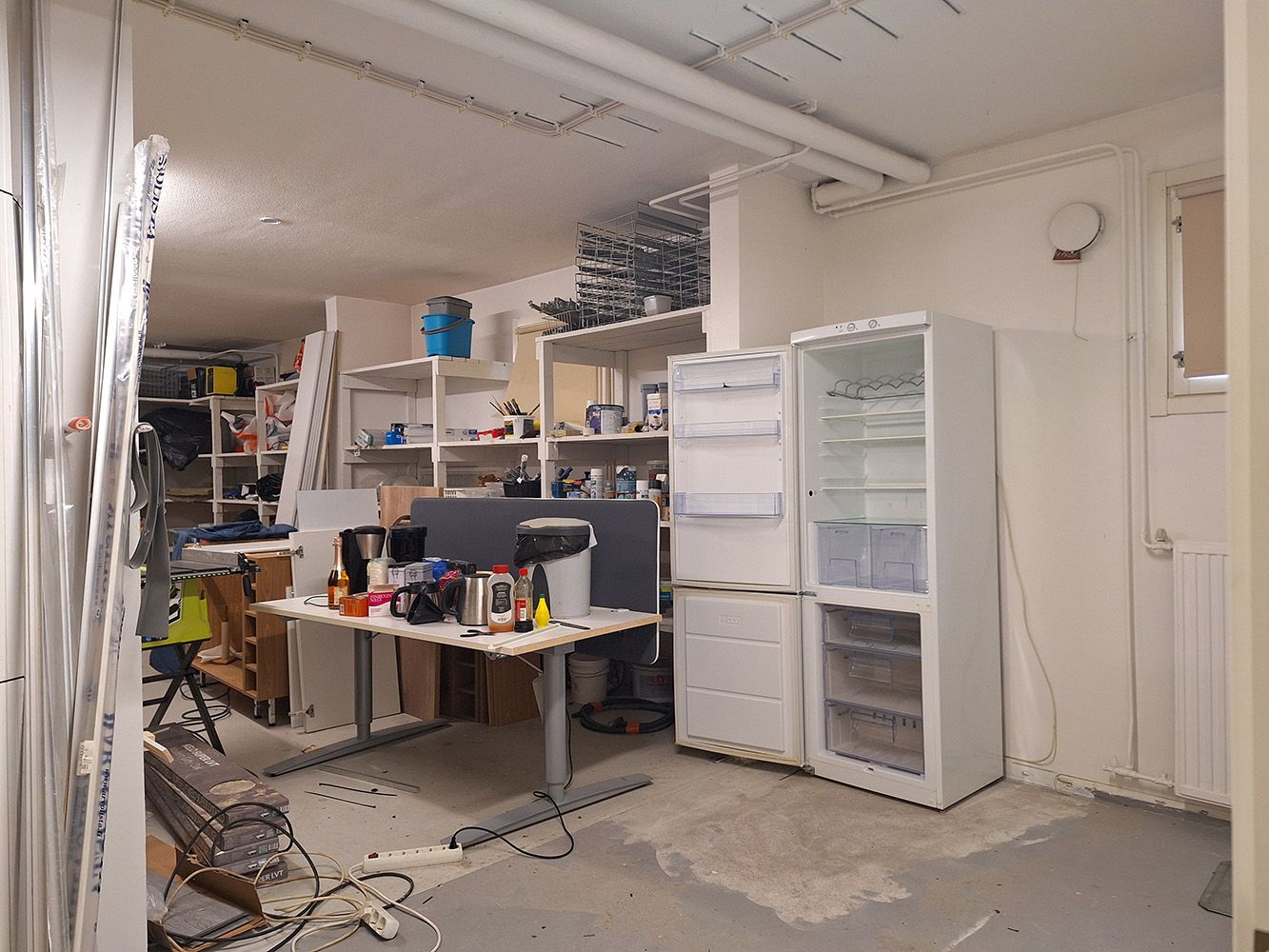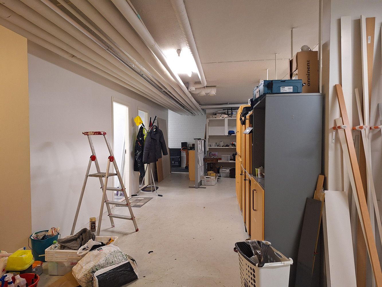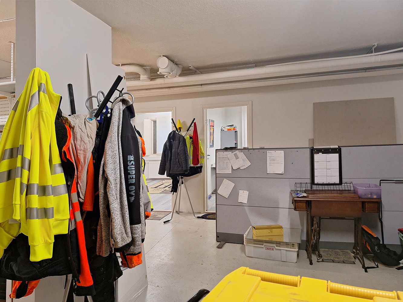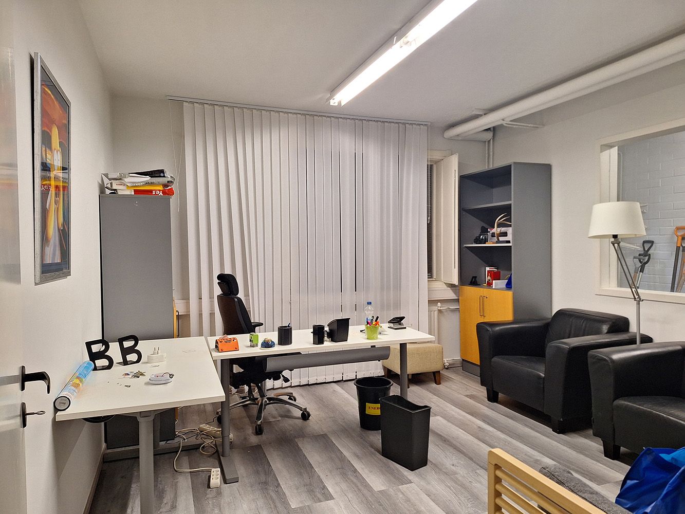 Huoneisto on noin 127-neliöinen ja sijaitsee asuinkerrostalon katutasossa. Tila on aikaisemmin toiminut yrityksen varasto- ja työtilana. Huoneistossa on kaksi toimistohuonetta (15 m² ja 12 m²) sekä avointa tilaa. Takaosassa on WC ja siivouskomero. Tilaan on katutasosta kaksi sisäänkäyntiä, josta toinen käynti on isoista pariovista ja toinen normaalista käyntiovesta. Molemmat sisäänkäynnit ovat rakennuksen etupihalta.